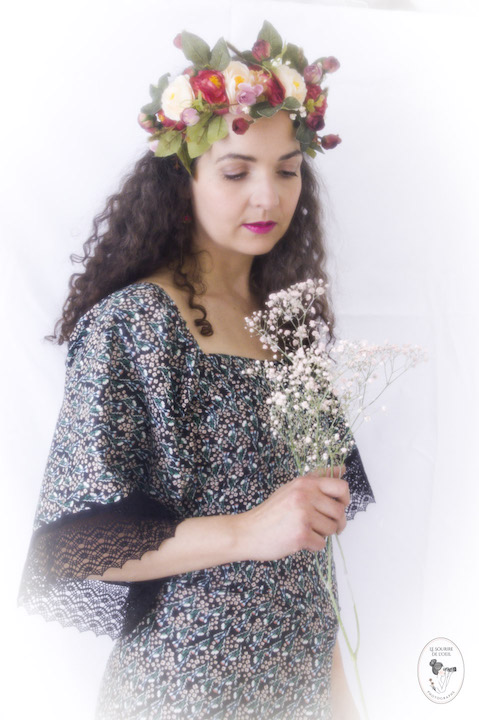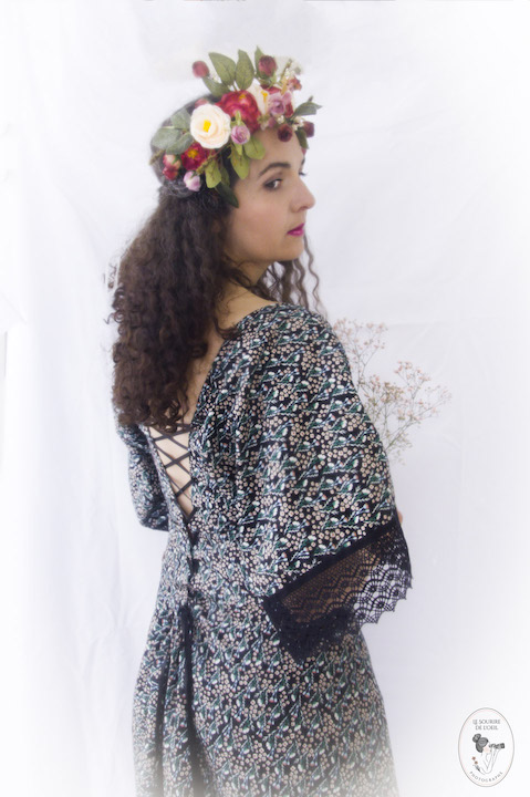 A mon tour, donc, de vous inviter dans cette sphère féérique et romantique qui vous présente les dernières créations de Maureen, à la fois artiste et modèle, telle, par exemple, la robe kimono désuète… Je vous laisse apprécier.
